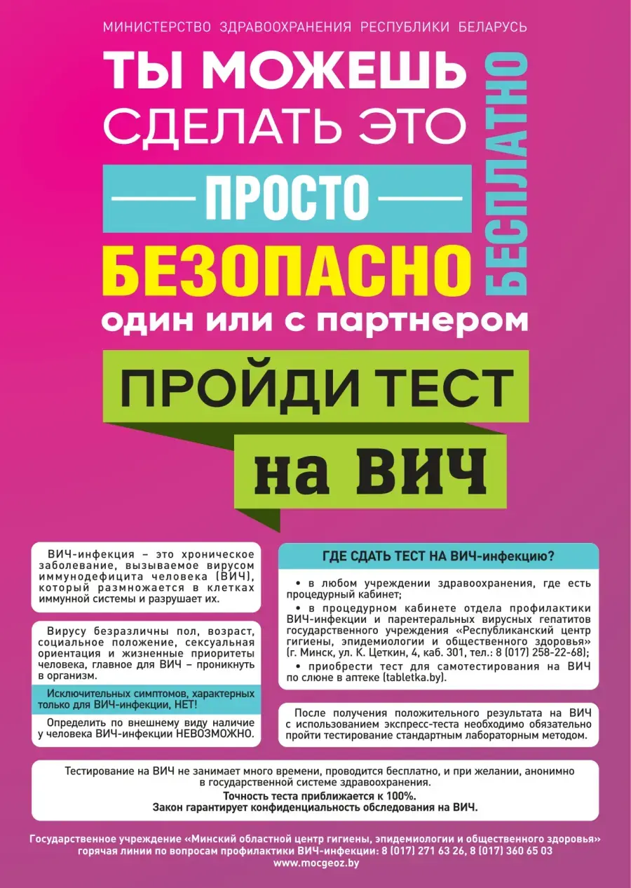 Самый достоверный метод иммуноферментного анализа (метод ИФА). Для этого необходимо сдать кровь из вены. В городе Борисове сдать кровь на ВИЧ можно в процедурном кабинете любой поликлиники, кожно-венерологического или психоневрологического диспансеров. Сделать это можно анонимно, при этом у Вас спросят возраст, городской или сельский житель, разъяснят вероятные результаты исследования.
